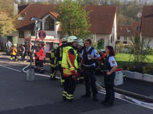 Am 08.04.2017 wurde die Feuerwehr Oberriexingen mit dem Stichwort „B3 Brand in Gebäude“ in die Mühlstraße alarmiert. Bereits auf der Anfahrt konnten die Einsatzkräfte eine deutliche Rauchwentwicklung erkennen, es handelte sich hierbei um einen Schwelbrand im Dachstuhl. Der Besitzer des Hauses hatte zu diesem Zeitpunkt bereits mit der Bekämpfung des Brandes begonnen und zwei Feuerlöscher zum Einsatz gebracht. Zur vollständigen Bekämpfung des Brandes musste das Dach noch von außen geöffnet werden und der betroffene Bereich wurde im Anschluß abgelöscht. Ebenfalls in Mitleidenschaft gezogen wurde die Verkabelung einer Photovoltaikanlage, welche eine zusätzliche Gefahr für die Einsatzkräfte darstellte. Die defekten Kabel wurden in einem ersten Schritt gesichert und später dann durch eine Elektrofachkraft entfernt und isoliert.